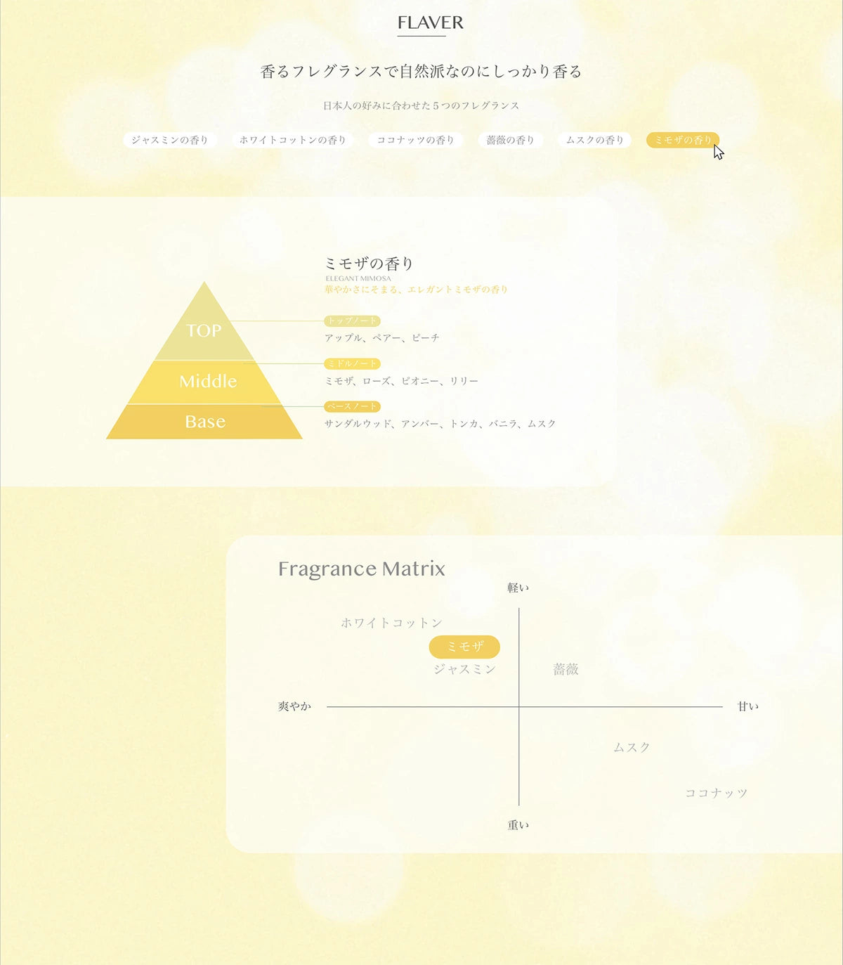 ●香りの強さの感じ方には個人差があります。 使用量の目安を参考に、周囲の方にもご配慮いただきながらお使いください。